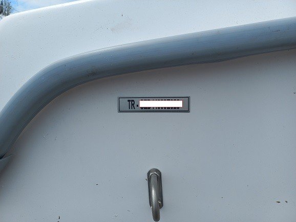 Tekne Seri No Fotoğrafı : TS 10087 Standartına uygun teknenin kıç aynasında sancak tarafta çakılı olan ve imalatçı tarafından monte edilmiş olan Tekne Tanıtım Numarası