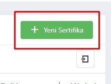 - Açılan sayfanın sağ üst kısmında yer alan "Yeni Sertifika" yazan yeşil kutucuğa tıklanır.