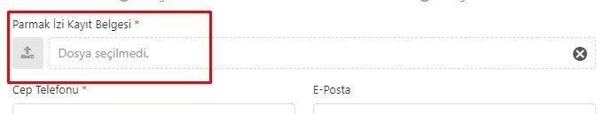 - Sonraki aşamada "Parmak İzi Kayıt Belgesi" yazısının altındaki kutuya tıklayarak Nüfus Müdürlüklerinden alınan Pasaport Yerine Geçen Belge Talep Yazısı sisteme yüklenir
