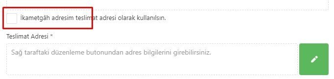 - Gemiadamı cüzdanının ikametgah adresinden farklı bir adrese gönderilmesi isteniyorsa "Teslimat Adresi" yazan kutunun sağındaki yeşil kısma tıklanarak teslimat adresi girişi yapılır